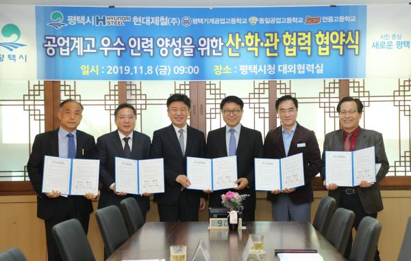 이날 협약식에는 정장선 평택시장을 비롯 유의동 국회의원, 현대제철 안동일 대표이사와 평택기계공업고등학교 김광회 교장, 동일공업고등학교 정기학 교장, 안중고등학교 김진현 교장 등이 참석해 협약을 맺고 긴밀한 협력체계를 구축하기로 했다.
