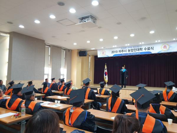 파주시는 지난 7일 농업기술센터 농업과학교육관 3층 교육장에서 2019 파주시 농업인대학 수료식을 하고 49명의 교육 수료생을 배출했다.