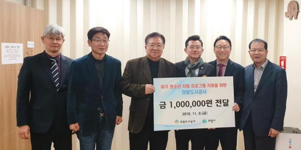 이번 후원금은 의왕도시공사 임직원이 자발적으로 기부한‘희망 나무 심기’사회공헌기금을 통해 마련한 것으로 지역 내 위기 청소년 보호시설인 경기 청소년 자립생활관 거주 청소년들이 안정적인 사회 구성원으로서 성장하는데 도움을 주기 위해 추진됐다.