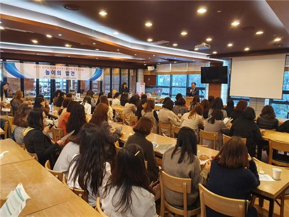 행사는 전문적학습공동체 연합콘퍼런스의 일환으로 유아놀이교육 동아리 10개팀의 놀이수업 연구와 실천 경험을 동료들과 함께 공유하고자 마련되있다.