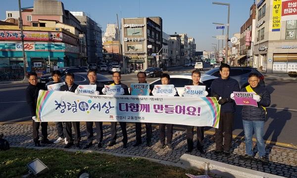 안성시 교통정책과는 지난 8일 봉산로타리 일원에서 관내 버스업체인 백성운수의 조합원과 임직원, 교통정책과 직원 등 40여명이 참여한 가운데 ‘운수업체와 함께하는 청렴문화 확산 캠페인’을 실시했다.