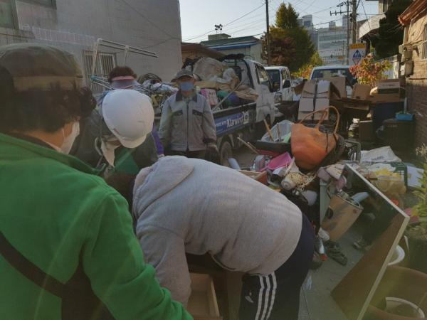 모두 한마음으로 실내·외에 적치된 폐지와 고철, 옷 등을 모두 수거했으며 청소를 지켜보던 이웃주민들은 골목이 깨끗해지고 화재 위험도 줄어들어 기쁘다고 전했다.