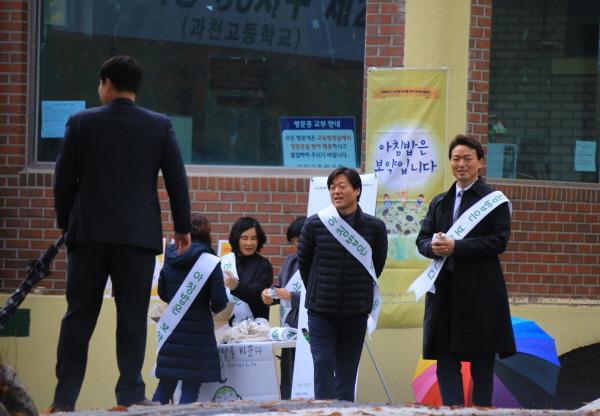 과천시는 식생활교육과천네트워크와 함께 과천고등학교, 과천문원중학교 등 두 곳에서 등교하는 학생들에게 아침밥 먹기의 중요성과 바른 식습관을 알리는 홍보활동을 전개했다.
