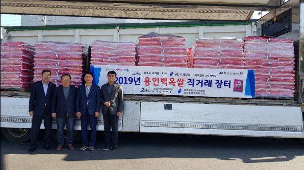 이날 용인시농협쌀조합 공동사업법인은 관내 농가에서 생산한 백옥쌀 10kg짜리 350포, 20kg짜리 500포 등 850포를 판매했다.