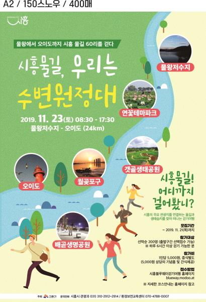 ‘시흥물길, 우리는 수변 원정대’는 시흥시 물왕저수지에서부터 연꽃테마파크, 호조벌, 갯골생태공원, 월곶포구, 배곧신도시, 오이도를 잇는 물길을 걷는 행사로 시흥의 수변생태관광 활성화 추진을 위해 물길의 처음과 끝을 걸어보는 의미있는 프로그램이다. 총24㎞를 걷는 이번 행사는 관광 트렌트인 걷기를 기본 모티브로 구간구간 특색있는 체험 프로그램을 운영할 계획이라고 전했다.