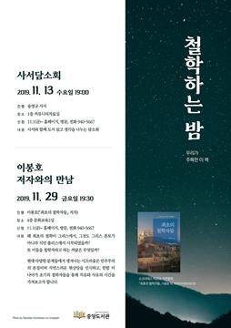 파주시 중앙도서관은 오는 29일 작가 이봉호 교수를 초청해 철학하는 밤이란 주제로 독자들과 소통의 시간을 갖는다.