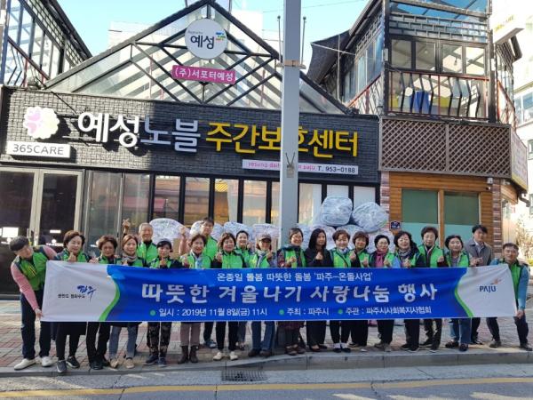김영미 파주시 복지정책과장은 올해 2월부터 추진 중인 ‘파주-온돌사업’의 기본방향과 제공 중인 서비스를 설명하고 “회원들이 전달하는 난방용품으로 올겨울을 따뜻하게 보내실 어르신들 생각에 벌써 마음이 따뜻해지는 것 같다”고 말했다.