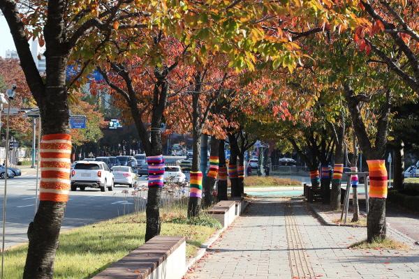 7일부터 지역 내 주요 거리 5개소 가로수에 뜨개옷 입혀