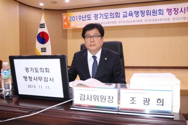 경기도의회 교육행정위원회 조광희 위원장이 지난 11일 용인교육지원청에서 실시한 용인·성남·양평·가평교육지원청에 대한 행정사무감사에서 줄지 않고 있는 자살·자해학생 문제와 교육환경개선사업으로 폭증하는 업무에 비해 턱없이 부족한 시설직공무원의 문제를 지적했다.