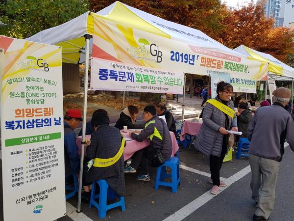 복지 상담, 치매검사 및 만성질환 등 건강 상담, 일자리 상담, 서민금융 상담, 주거복지 상담, 각 기관별 사업 안내 및 홍보 등 해당 분야별 다양한 서비스가 원스톱으로 제공됐으며 신곡권역 희망넝쿨단 넝쿨지기는 행사에 참여한 주민을 대상으로 복지사각지대 발굴 홍보 캠페인을 실시했다.