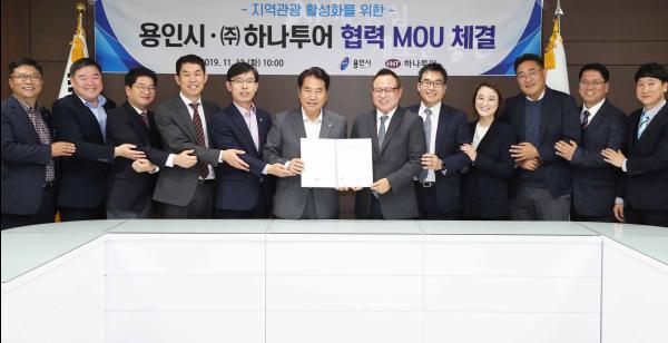 용인시는 12일 시장실에서 ㈜하나투어와 지역관광 활성화를 위한 업무협약을 맺었다.