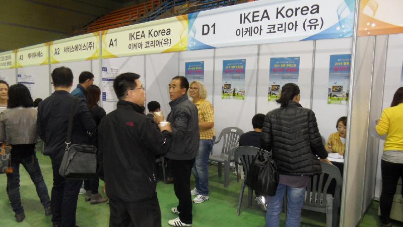| 13일 광명시민체육관에서 2016 광명 행복드림 일자리박람회가 열렸다. 이케아 부스에 많은 구직자들이 구직정보를 위해 모여있다. <ⓒ미디어타임즈> |