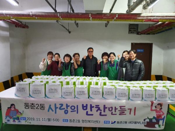 동춘2동 새마을부녀회는 지난 11일 동 행정복지센터에서 지역 내 홀몸노인과 중증장애인 가정을 위한 사랑의 반찬 나눔 행사를 실시했다.