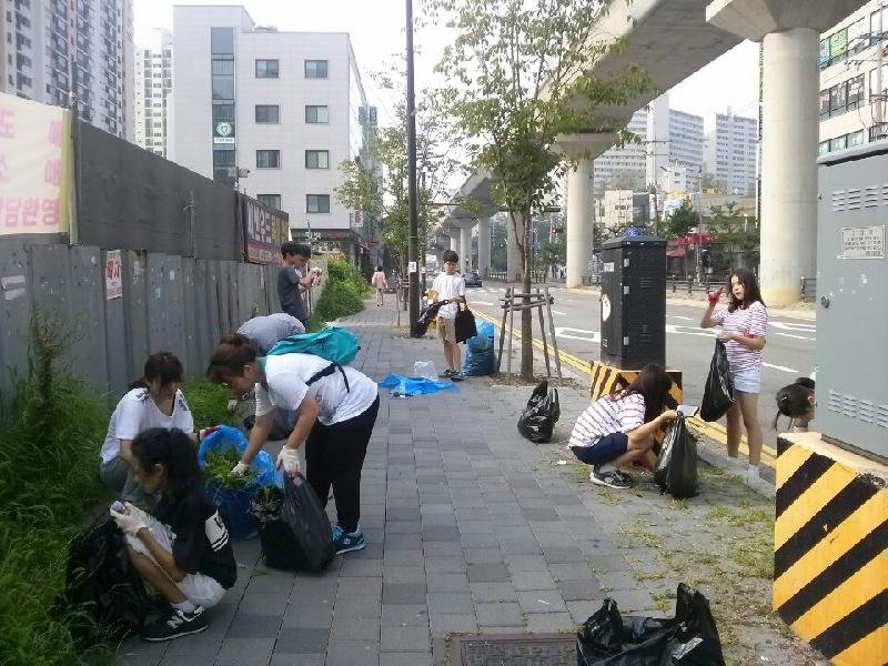 지난 7월 28일, 8월 7일에는 총 82명의 자원봉사 학생들과 60명의 자생단체 회원들이 참여해 신흥로, 외미로, 백석로 도로변의 잡초를 제거하고 중랑천변, 회룡로 등 도로변에 28kg의 코스모스를 파종했다.