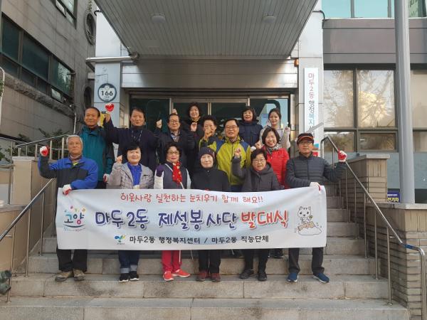 고양시 일산동구 마두2동 행정복지센터는 지난 9일 직능단체장 및 회원 등이 참여한 가운데 제설봉사단 발대식을 개최했다.