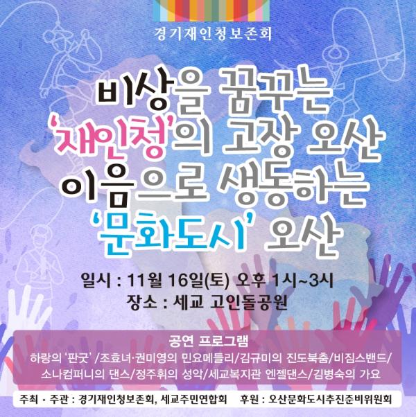 경기재인청보존회, 세교주민연합회, 오산문화도시추진준비위원회가 ‘경기재인청’과 오산‘문화도시’를 홍보하기 위해 공연을 갖는다.