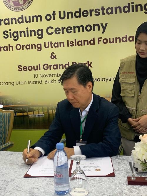 협약식에는 오랑우탄보전기금 설립자 탄스리 무스타파 카말 Jj Mustapha Kamal bin Hj Ahu Baker)을 비롯 말레이시아 야생동물 국립공원부 차관과 정부관계자 등이 참석했으며 서울대공원은 협약식 후 현지 언론 인터뷰를 통해 미래의 세대에게 물려줄 소중한 생명 자산을 함께 보전해나가겠다고 밝혔다