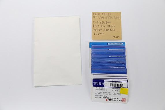 흰 봉투 속에 헌혈증 119장, 손 편지로 좋은 곳에 쓰이고 싶어…기부의사 밝혀