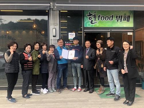 초당동 지역사회보장협의체는 지난 12일 '현푸드뷔페'를 우리동네 1촌 나눔가게로 지정하고 나눔가게 현판 전달식을 가졌다.