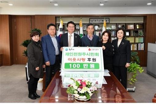 재인천원주시민회와 재부천원주시민회는 지난 12일 원주시장 집무실에서 어려운 이웃을 위한 고향사랑 후원금 각 100만원씩을 전달했다.