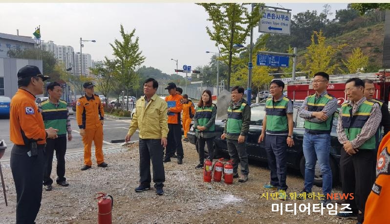 [미디어타임즈=문상수 기자]김포시 고촌읍사무소(읍장 노승일)가 지난 17일 고촌소방서와 함께 재난현장 대응능력 향상을 위해 읍사무소 건물내 화재발생을 가상한 ‘2016 합동소방훈련’을 실시했다. 이번 훈련은 읍사무소 민원실에서의 전기누전으로 인한 화재를 가상한 훈련으로 화재 등 각종 재난을 예방하고 재난발생 시 신속하고 효율적으로 대응함으로써 인명 및 재산피해를 최소화하고자 마련됐다.합동소방훈련은 화재 발생시 고촌읍 자위소방대의 화재신고․전파, 초기 화재진화 및 소화기구(소화기, 옥내소화전) 작동방법, 주민대피 유도요령, 부상자 응급처치 등에 대한 교육 및 실습 등 긴급상황 시 대처능력 향상에 중점을 두고 진행됐다.노승일 읍장은 “이번 훈련은 화재 발생시 초기 대응능력강화를 통해 인명 및 재산피해는 물론 시설물 등의 안전관리를 위해 마련했다”며, “주기적인 실습훈련을 통해 유사시 신속한 상황 대처능력을 배양하고 화재예방에 만전을 기할 방침"이라고 말했다.