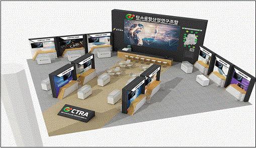 코엑스 3층 C홀에 위치한 전국 탄소기업 연합체인 탄소융복합산업연구조합 전시관에서는 국내 유망 중소기업인 크린엔사이언스社, 피치케이블社, 국도화학社 등 14개 탄소기업에서 생산한 탄소소재를 적용한 중간재와 이를 다시 응용한 최종생산품들이 전시된다.