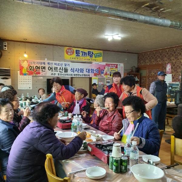 포천시 화현면은 지난 12일 화현면지역사회보장협의체와 함께 소외 어르신 24명을 모시고 ‘꽃고을 어르신 외식 지원 행사’를 개최했다.