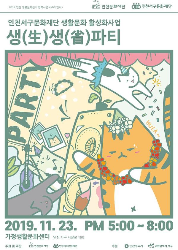 인천서구문화재단은 인천문화재단과 공동 주최·주관하는 “2019 인천생활문화센터협력사업 ‘우리만나’”의 일환으로 오는 23일 가정생활문화센터에서 ‘생생파티’를 개최한다.