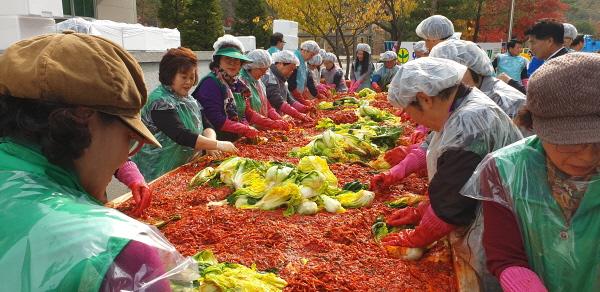 이번 행사에는 회원 70여명과 자원봉사자 40명이 참여했고 국민건강보험공단, 와부읍지역사회보장협의체, 와부농협, 중부새마을금고 티엔아이 등 기관들의 후원으로 2,000포기의 김장 김치를 담갔다.