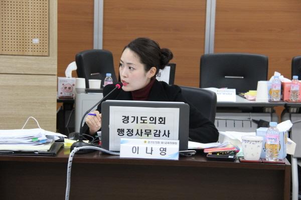 경기도의회 제1교육위원회 이나영 의원은 지난 12일 광주하남교육지원청에서 열린 광주하남·평택·여주·이천·안성 5개 교육지원청을 대상으로 한 2019년 행정사무감사에서 최근 교직원의 성 관련 범죄로 도덕적 해이가 심각하다고 지적하면서 이에 대한 단위학교 및 교육지원청의 엄정하고 신속한 대처와 향후 재발 방지 대책을 강구할 것을 촉구했다.