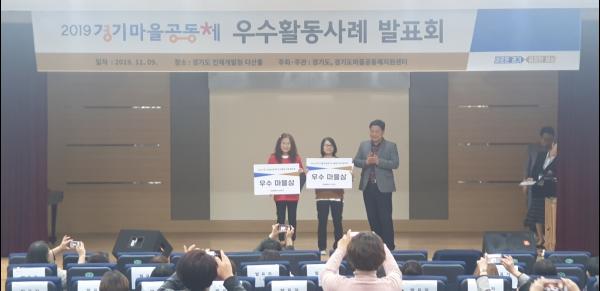 의정부시는 지난 9일 2019 경기마을공동체 우수활동사례 발표회에 참가한 공동체 마을북카페 나무가 우수마을상을 수상했다고 밝혔다.