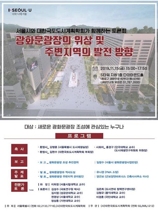 서울시가 ‘새로운 광화문광장’ 조성과 관련해 다양한 학회와 공동으로 분야별 ‘찾아가는 전문가 토론회’를 릴레이로 연다.