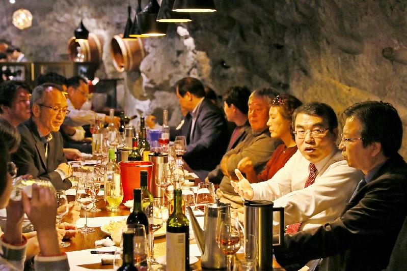 | 양기대 광명시장이 18일 광명동굴 와인레스토랑에서 전국 와이너리 대표들과 간담회를 하고있다. ⓒ광명시청 제공 |