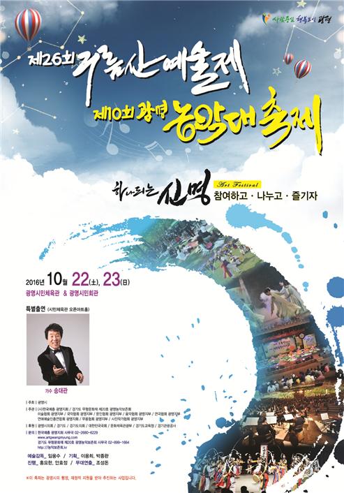 [미디어타임즈= 신정식 기자] ‘제26회 구름산예술제’와 ‘제10회 광명농악대축제’가 오는 22일(토)부터 23일(일)까지 광명시민체육관과 광명시민회관에서 열린다.