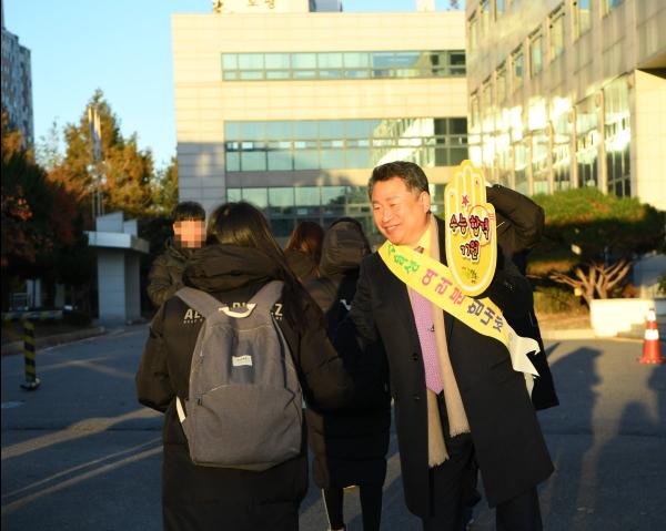안승남 구리시장은 2020학년도 대학수학능력시험이 치러진 14일 오전 7시부터 시험장인 수택고등학교를 찾아 수험생들을 응원하고 학부모들을 격려했다.
