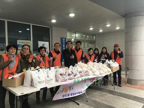 이번 11월 착한배송에서는 보리빵, 고로케, 와플, 야쿠르트, 구운계란, 콩나물로 구성된 사랑의 꾸러미를 비가 오는 궂은 날씨 속에서 관내 저소득층 40가구에게 전달했다.