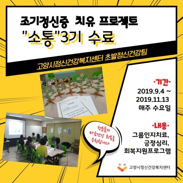 고양시정신건강복지센터 초발정신건강팀은 지난 9월 4일부터 11월 13일까지 총 10회기의 2019년 조치유 프로젝트 ‘소통’ 3기를 운영하고 11월 13일 수료식을 진행했다.