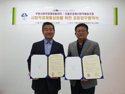 부평구사회적경제마을센터는 지난 13일 더좋은경제 사회적협동조합과 사회적경제 활성화를 위한 공동 업무협약을 체결했다.