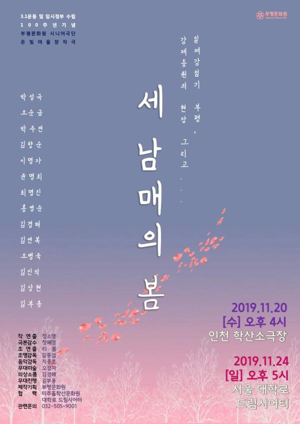 부평문화원 관계자는 “‘세 남매의 봄’은 인천조병창과 부평지하호, 미쓰비시제강 등 부평의 가슴 아픈 역사적 공간을 배경으로 당시 우리의 과거를 잊지 않길 바라는 마음을 담은 작품”이라며 “많은 주민들의 관람을 바란다”고 말했다.