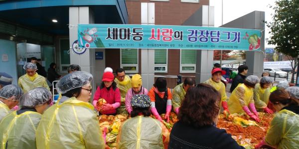 더불어 최선호 세마동장은 “함께 참여한 단체 회원들의 노고에 감사드리며 앞으로도 매년 사랑의 김장 담그기 행사를 실시하고 자원봉사활동도 함께 참여해 이웃과 함께하는 훈훈한 정이 지속되는 행복한 동을 만들었으면 좋겠다”고 말했다.