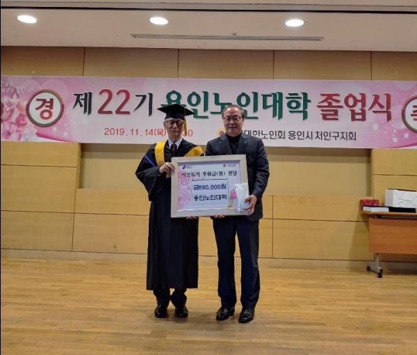 이날 졸업생들은 불우이웃돕기 성금 89만원을 모아 정해동 처인구청장에게 전달했다.