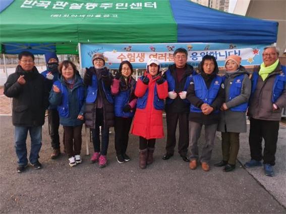 위원들은 쌀쌀해진 날씨 속에 따뜻한 음료와 함께 힘찬 응원의 메시지를 수험생들에게 전했다.