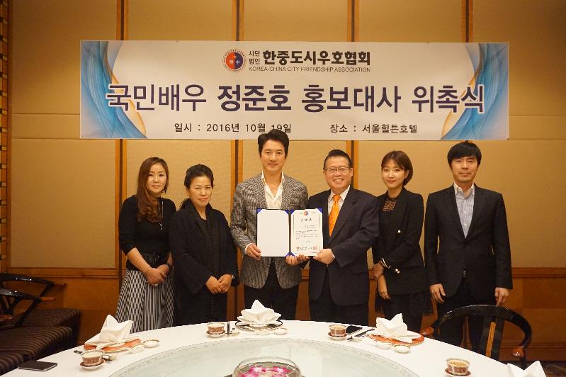 정준호씨는 "영화인으로서 한중 문화교류와 한류 문화콘텐츠 확산 등에 많은 관심을 갖고 있다"며 "한중 교류 전문기관인 한중도시우호협회의 활동을 적극 홍보하고 지원함으로써 한중 문화교류 확대와 한중 우호에 기여하고 싶다"고 말했다.