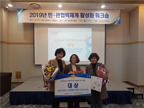 전라북도는 지난 14일 전남 여수 히든베이호텔서 개최된 2019년 민·관 협력체계 활성화 워크숍에서 대상인 보건복지부 장관상을 수상했다고 15일 밝혔다.