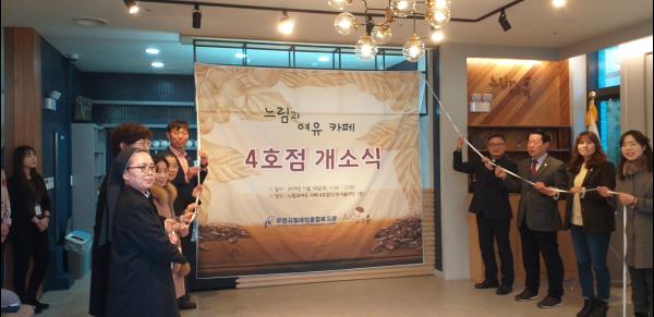 부천시 ‘느림과 여유’ 4호점이 지난 14일 상동어울마당 1층에 문을 열었다. 카페 ‘느림과 여유’는 부천시장애인종합복지관 평생대학에서 바리스타 교육을 받은 발달장애인 학생들의 사회적응훈련을 지원하는 직업훈련카페이다.