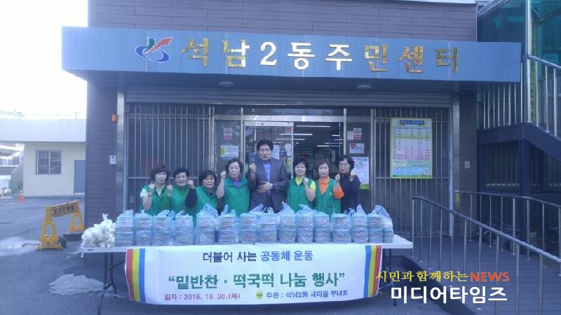 [미디어타임즈=문상수 기자]석남2동 새마을부녀회(회장 이복순)에서는 지난 20일 부녀회원 15명이 참석한 가운데 취약계층을 위한 밑반찬·떡국떡 나눔행사를 가졌다. 이날 새마을 부녀회원들이 모여 정성껏 담근 밑반찬(멸치볶음 외 2종)은 석남2동 주민센터를 통해 관내 취약계층 50세대에 전달되었다. 이복순 부녀회장은 “이번 나눔 행사를 통해 경제적 어려움이 있으며 사회적으로 소외된 분들에게 조금이나마 위안이 되었으면 한다.”며, “앞으로도 지역의 어르신뿐만 아니라 어려운 이웃을 위해 수시로 사랑 나눔 봉사를 이어가고 싶다.”고 말했다.석남2동 새마을 부녀회는 독거 어르신 생신상 대접, 헌혈 행사 및 관내 환경정비 참여, 바자회 개최, 어르신 무료급식 봉사, 이웃사랑 동전 모으기 등 지역사랑 나눔에 솔선수범하고 있다.