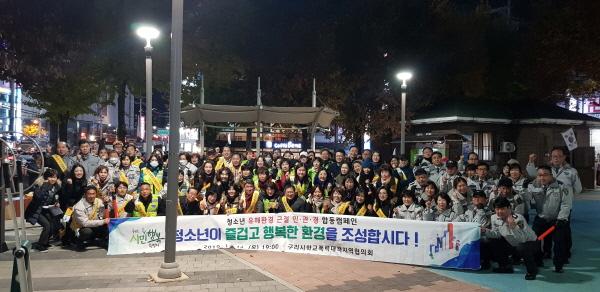 구리시는 지난 14일 저녁 대학수학능력시험을 마친 청소년들이 일시적인 해방감으로 인한 일탈을 예방하기 위해 유흥업소 밀집 지역을 중심으로 청소년 유해 환경 근절 합동 캠페인을 펼쳤다.