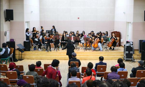 김만성 교장은 “매주 아침저녁으로 시간을 쪼개어 연습해 노력한 학생들과 지도교사에게 감사를 표하며 오케스트라 팀의 하모니처럼 서로 배려하고 지역사회에 봉사하는 건강한 학교를 만들어가겠다”고 밝혔다.