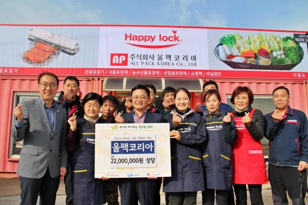 이날 전달식에는 강운석 ㈜올팩코리아 대표, 이병우 김포복지재단 대표이사 등 관계자들이 참석했으며 ㈜올팩코리아의 생산 제품 중 2200만원 상당의 아동용 넥워머 상품을 김포복지재단을 통해 사회복지기관 및 시설 등에 전달할 예정이다.