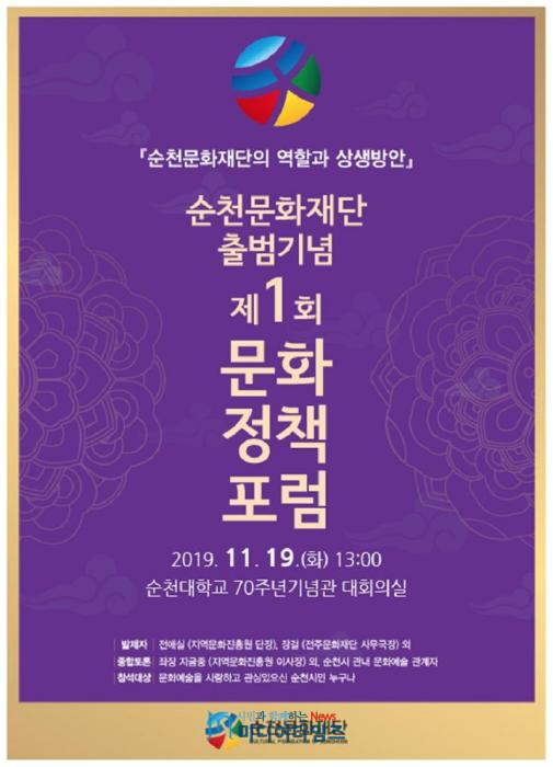 이번 문화정책포럼은 순천문화재단이 시민들과 함께 상생할 수 있는 방안과 문화재단의 역할에 대한 다양한 의제를 논의하기 위해 마련됐다.